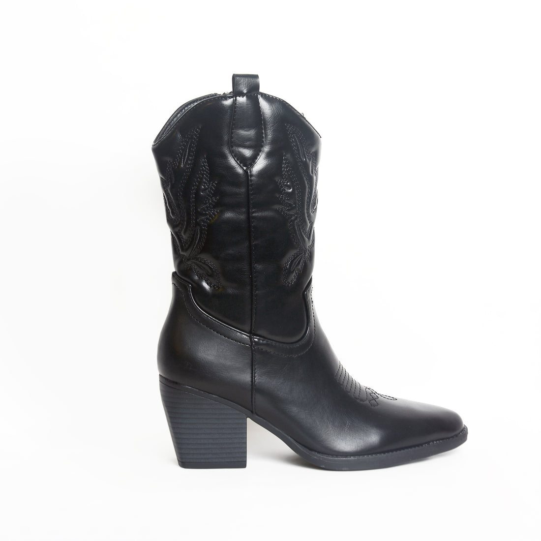 Western High-Calf Cowboy Boots – Embroidered Block Heel | Queen Footwear