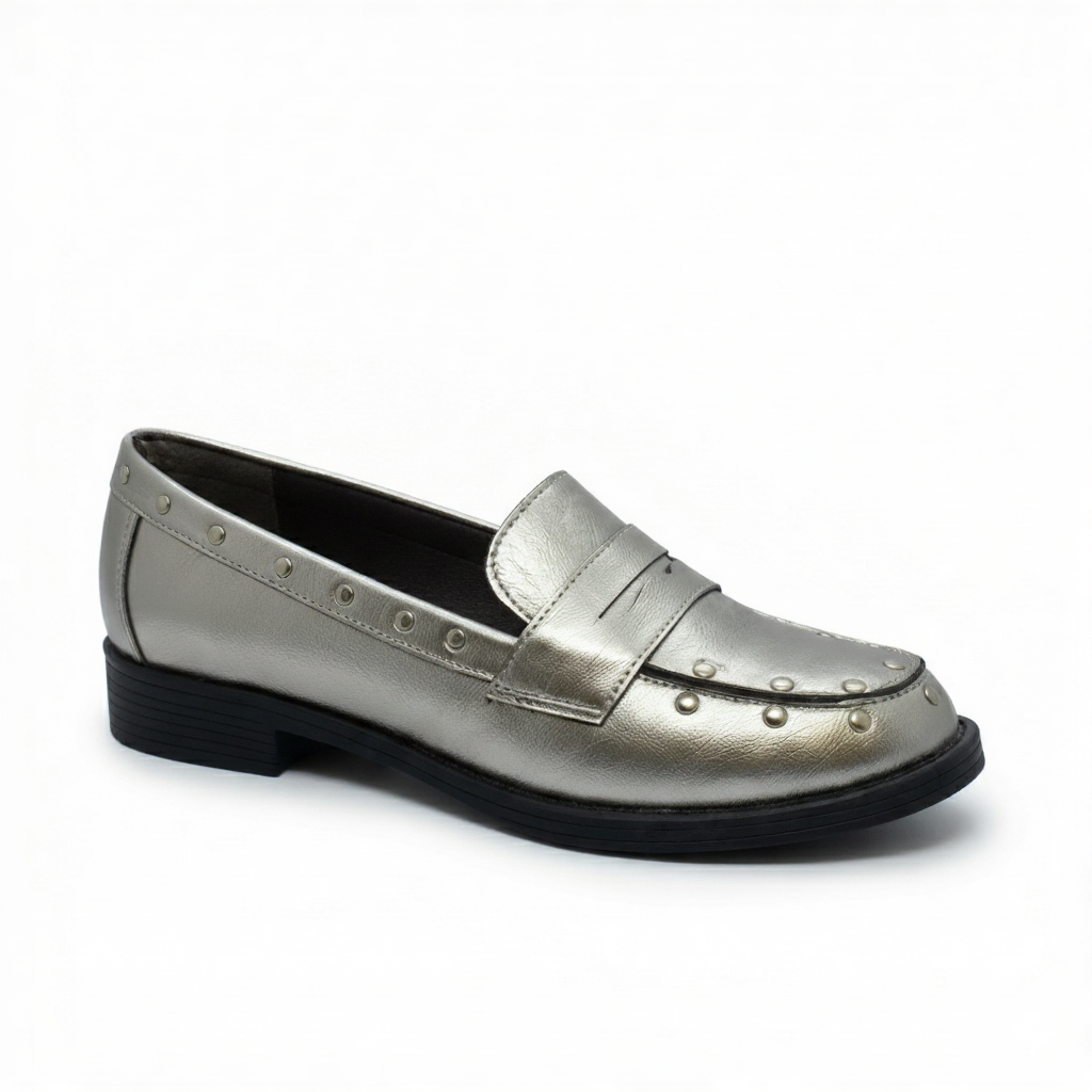 A refined loafer silhouette accented with minimal stud detailing, designed to elevate everyday looks without losing elegance.