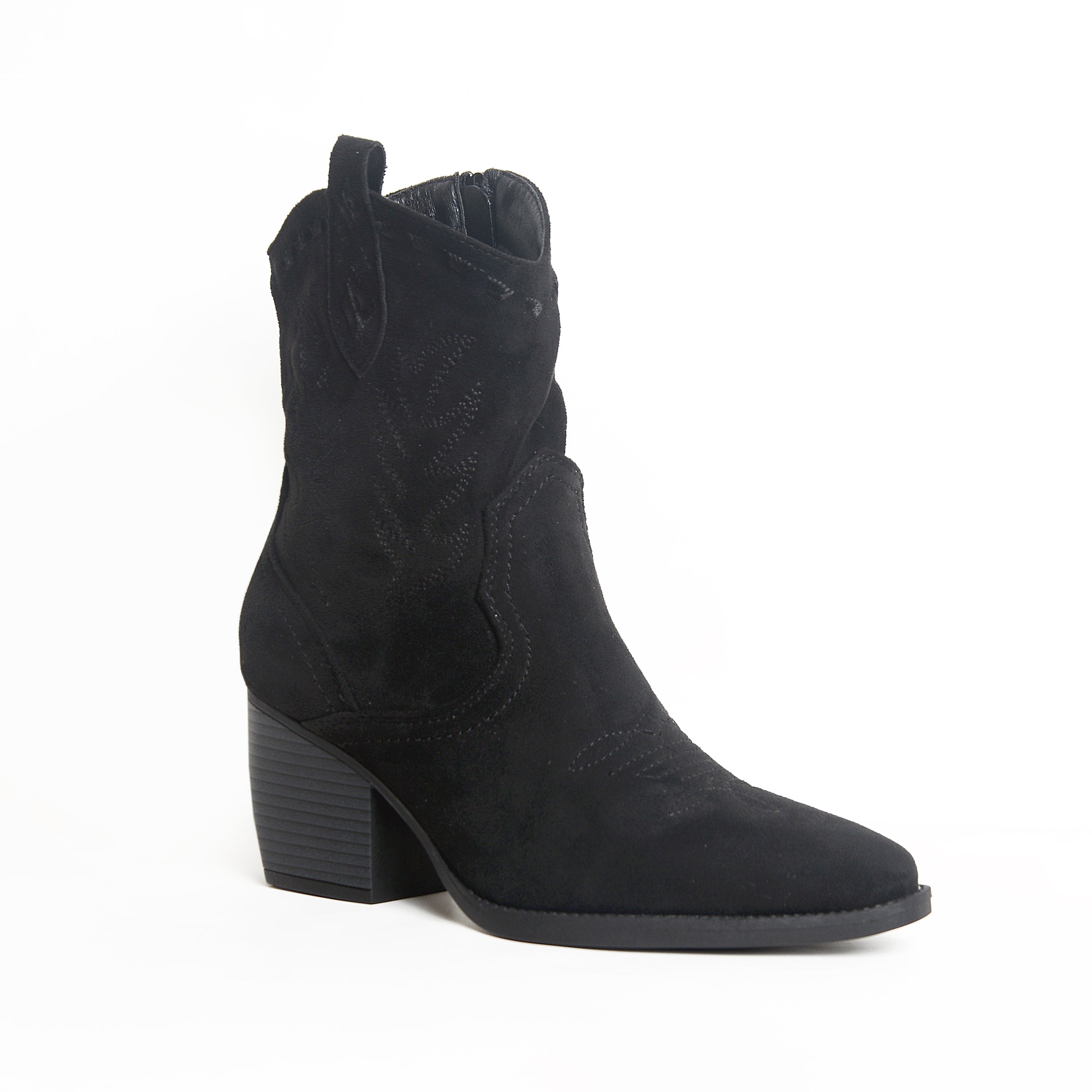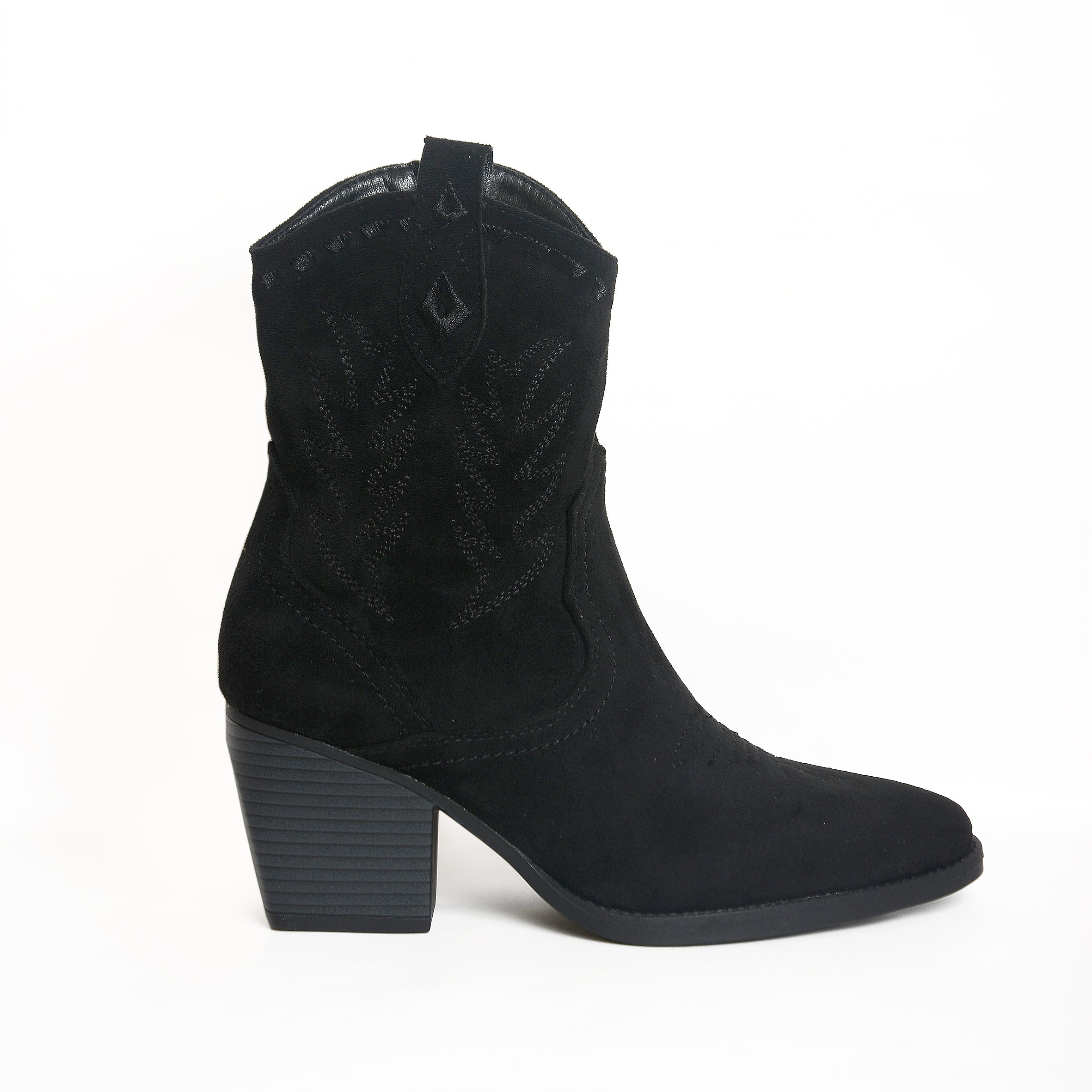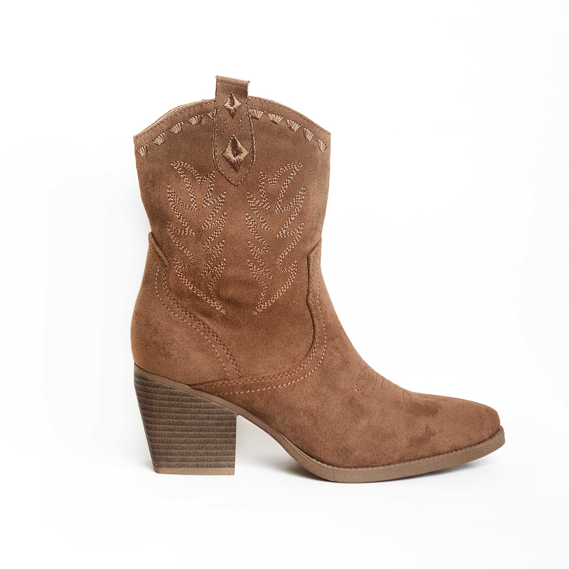 Crafted from soft suede with detailed stitching and a classic cowboy-inspired silhouette, this boot blends rustic charm with modern feminine style.