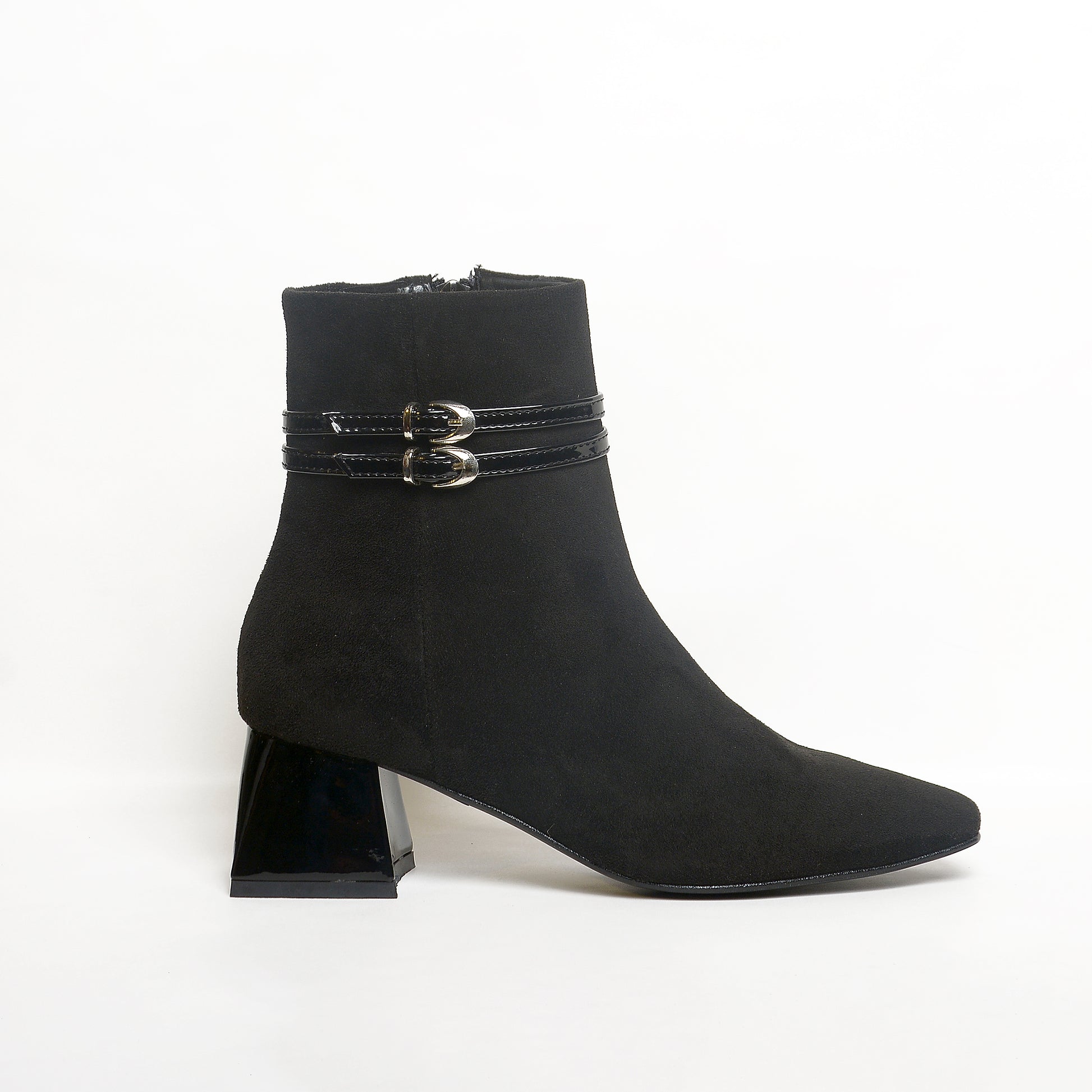 Women’s Block Heel Ankle Boots with Double Buckle | Queen Footwear