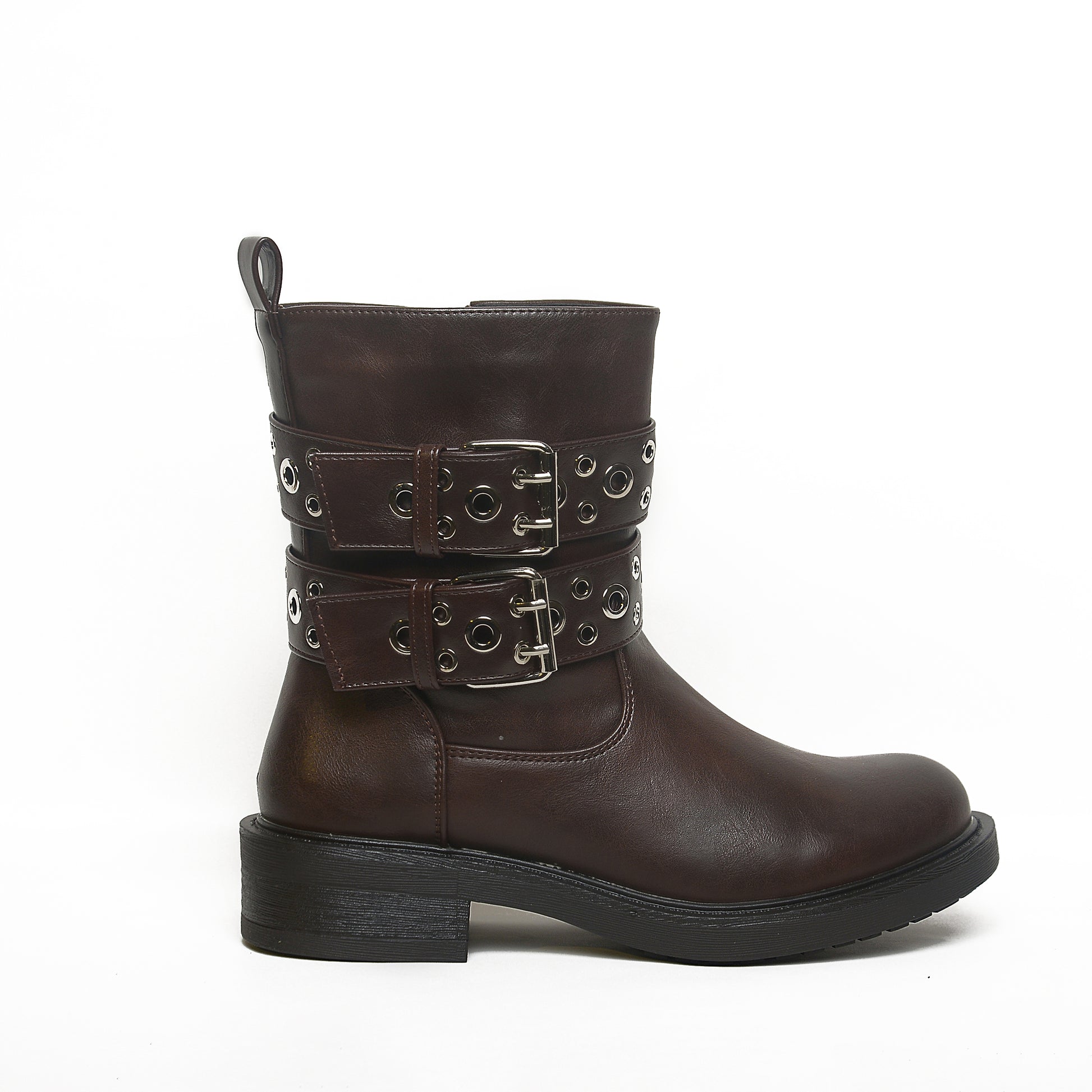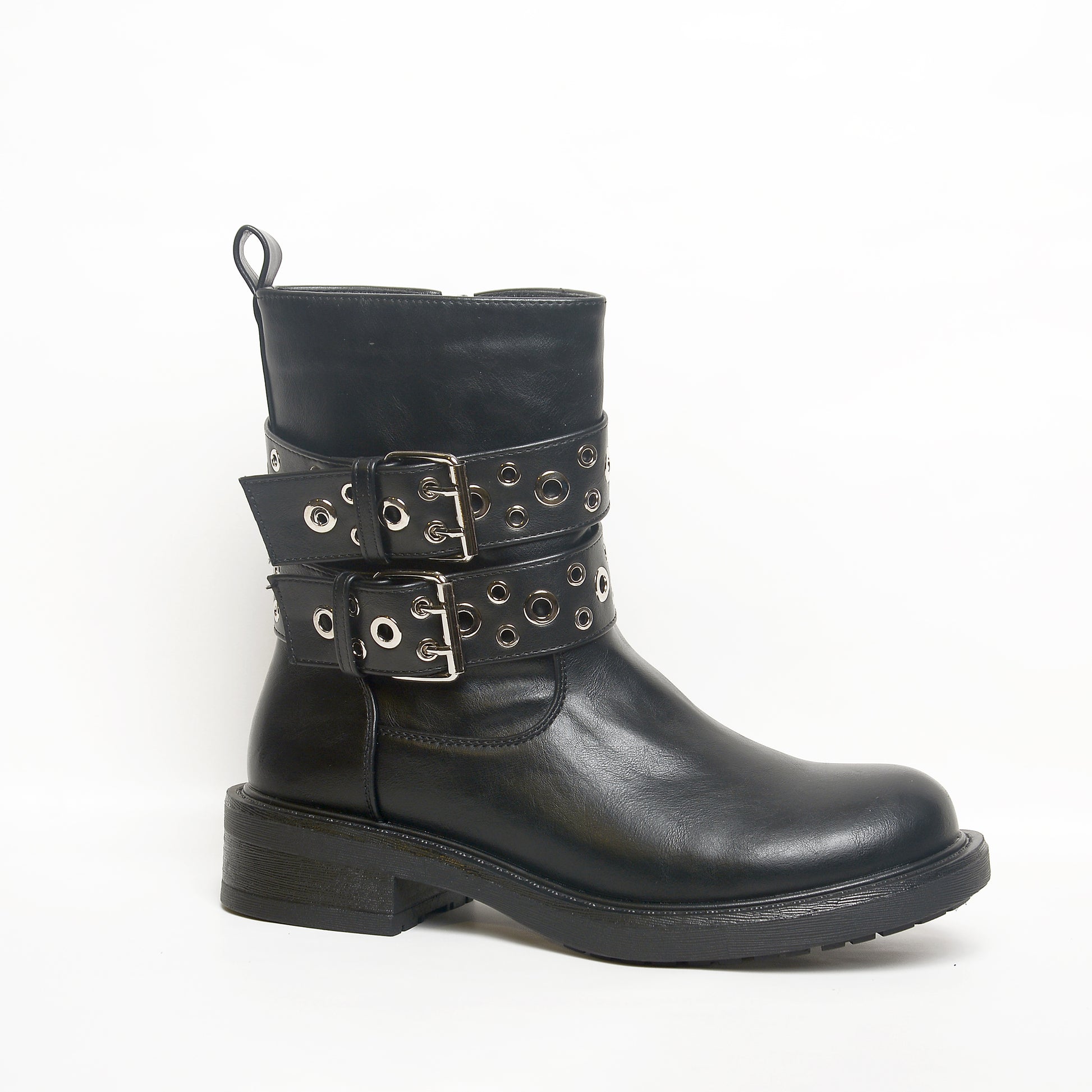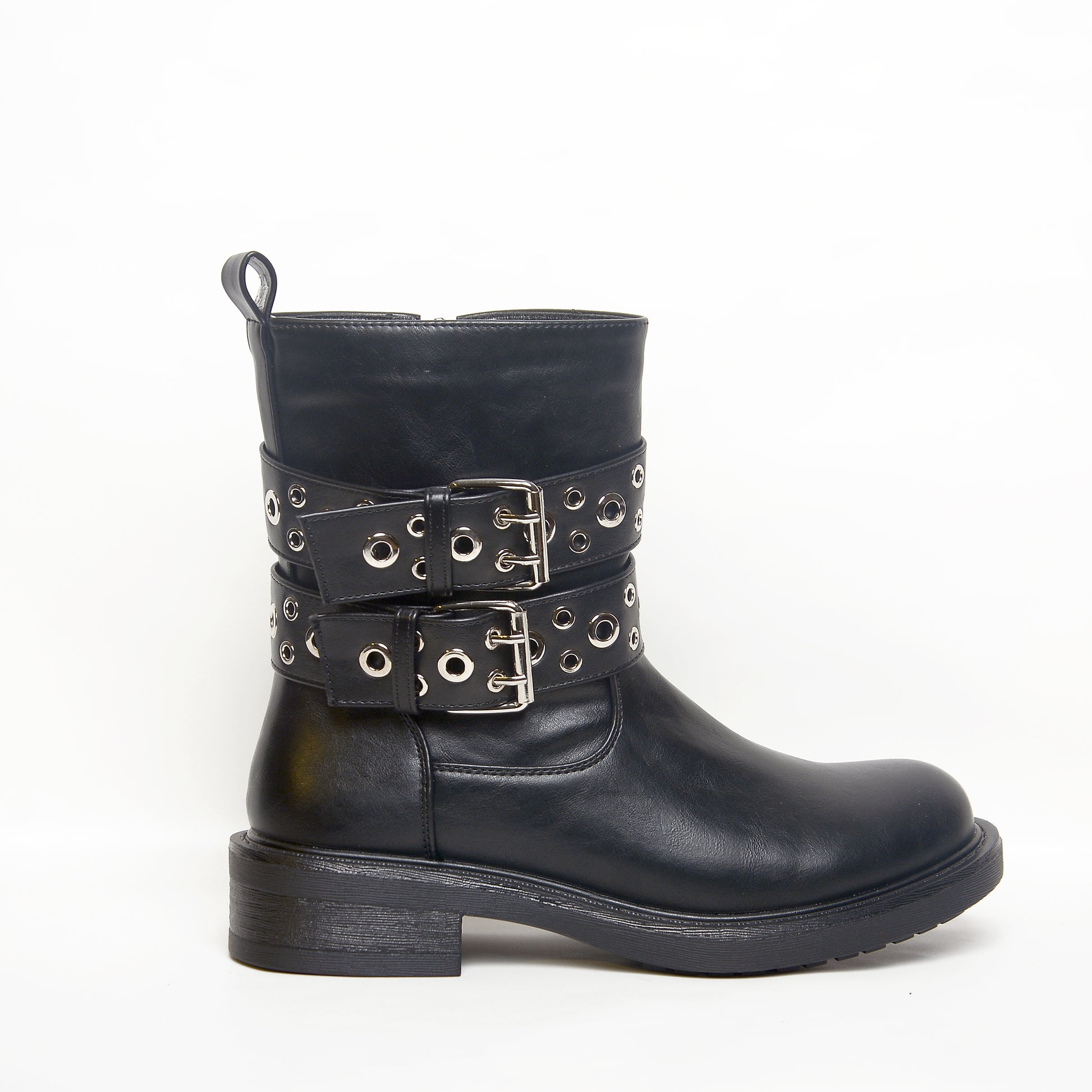 Women’s Double-Buckle Moto Ankle Boots | Queen Footwear