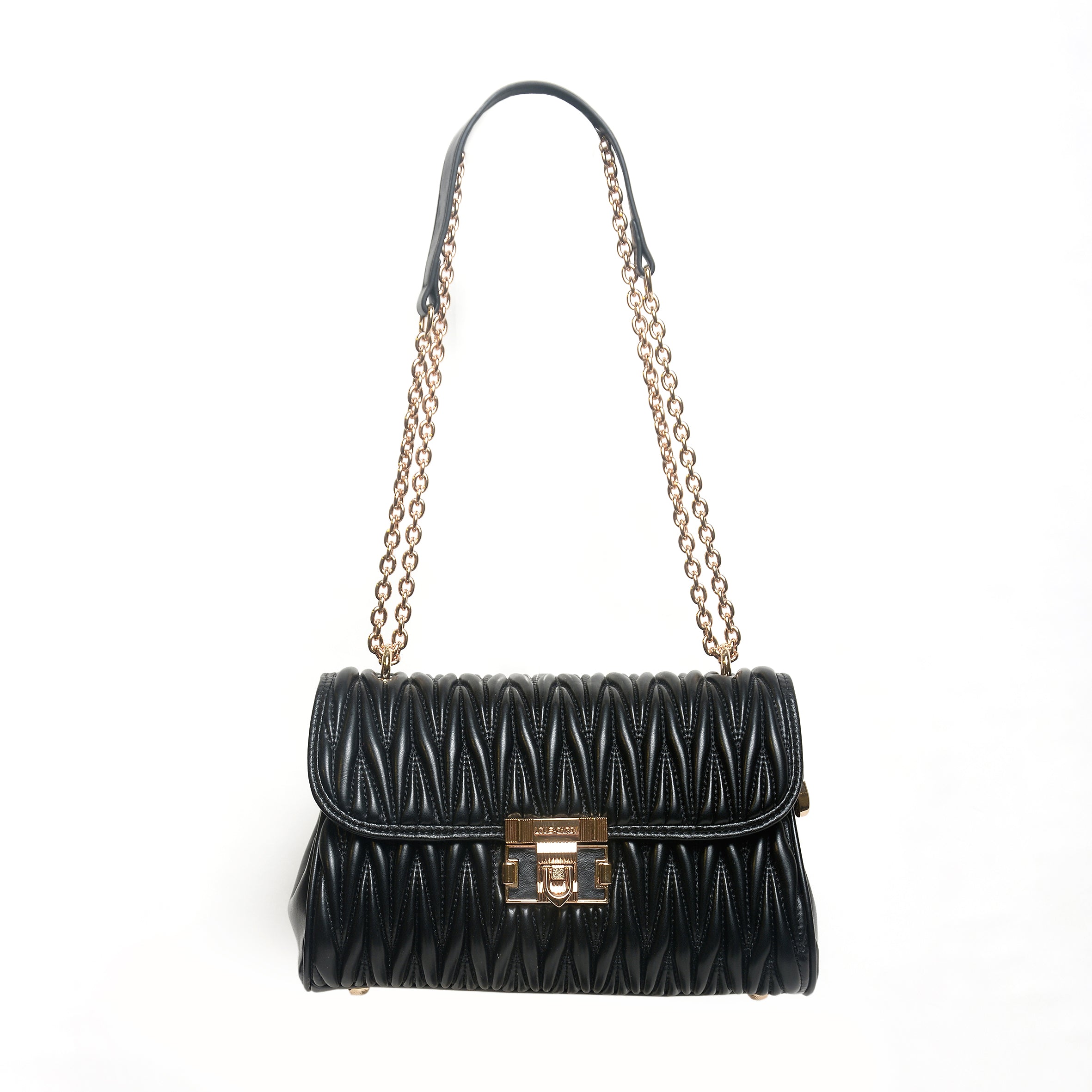 The structured quilted design gives the bag a premium look, while the gold-tone chain strap adds instant glamour whether worn on the shoulder or doubled for a shorter carry.