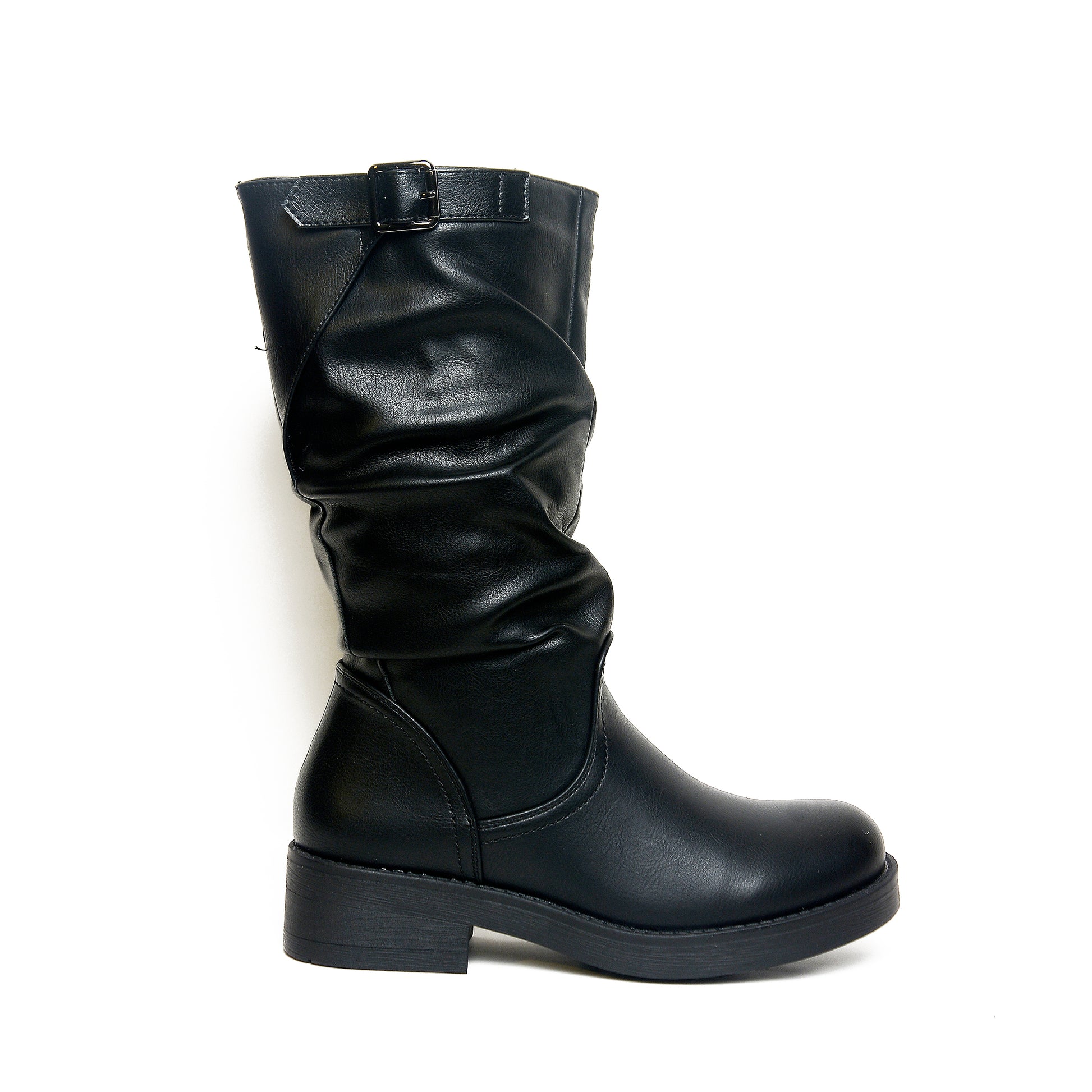 Women’s Slouchy Buckle Mid-Calf Boots | Queen Footwear