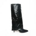 Bold, fashion-forward, and effortlessly elevated — the Slouchy Pointed-Toe Knee Boots from Queen Footwear bring a modern twist to classic high-rise boots.